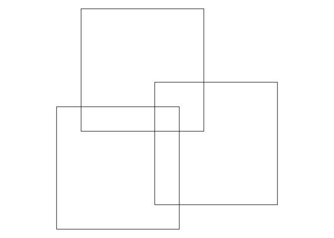 Suppose you have the following geometry, consisting of three overlapping square polygons:
