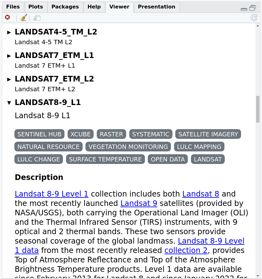 ## [9] "stac_extensions" "stac_version" "summaries" "title"